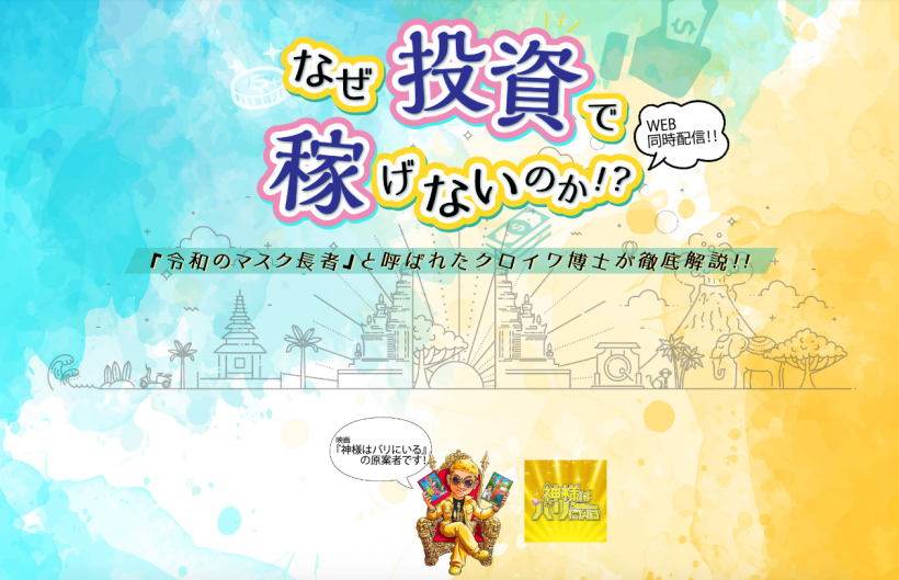 | 【講演】 | 「なぜ投資で稼げないのか!?令和のマスク長者と呼ばれた黒岩氏が徹底解説!」 |