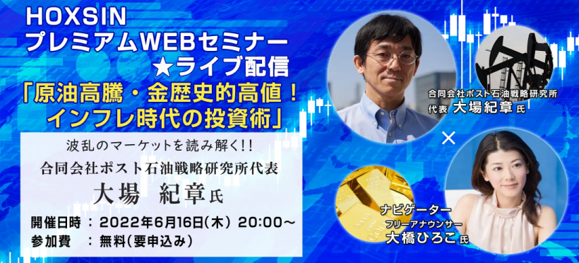 本セミナーでは、原油の最新需給などから市場予想を徹底分析し、原油価格の今後の展望について解説します。更に、原油高などの影響により様々な分野で値上げが相次ぐなど日本にもインフレの波が着実に押し寄せる中で、資産防衛のための『金の投資戦略』も必見です。