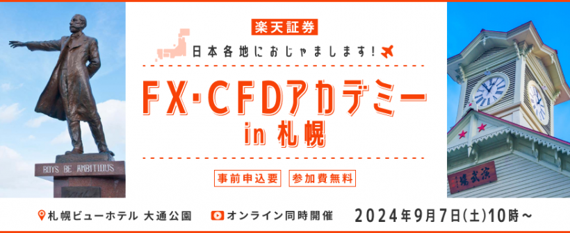 9月7日(土)に、札幌ビューホテル 大通公園 にて対面セミナーを開催いたします!!最新のマーケット情報や為替相場の見通しなど、お取引に役立つ情報をお届けいたします。また、トレーディングツールの使い方などをわかりやすくご説明いたします。講師や社員に直接ご質問いただくことも可能です