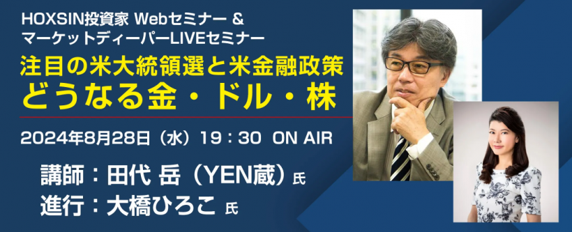 円建て、ドル建て共に史上最高値を更新した金、1990年4月以来約34年ぶりに160円台に到達したドル円相場。バブル後の史上最高値を更新した日経平均株価など、2024年の金融市場は歴史に残る大きな動きとなりました。日米欧の金融政策、中国景気の行方、中東情勢、米大統領選挙と、年末にかけてもマーケットを大きく揺さぶる要因が山積みする中、金・ドル・株の2024年年末に向けての動向を、本セミナーでわかりやすくお話しいただきます。