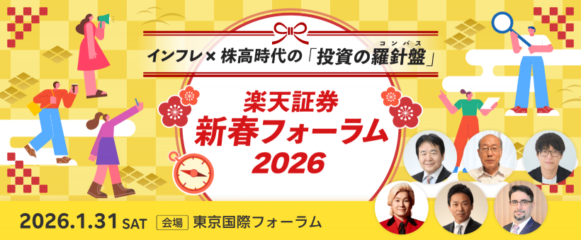 イベント 関東 楽天証券主催「新春フォーラム2026」 1月31日|土| 10:00-17:00 インフレによる物価高と株高に、取り残される日本の家計。 世界的に見ても異例な「失われた30年」で、知らず知らずお金の常識がズレてしまっているかもしれない。 資産づくりが当たり前になりつつある今だからこそ、 自分らしい資産づくりの羅針盤(コンパス)を見つけよう。 【講演】 「新春フォーラム2026」 【日程】 1月31日(土) 【時間】 10:00-17:00 【会場】 [ 関東 ] 東京・有楽町(東京国際フォーラム ホールE) 【料金】 無料 詳細を見る