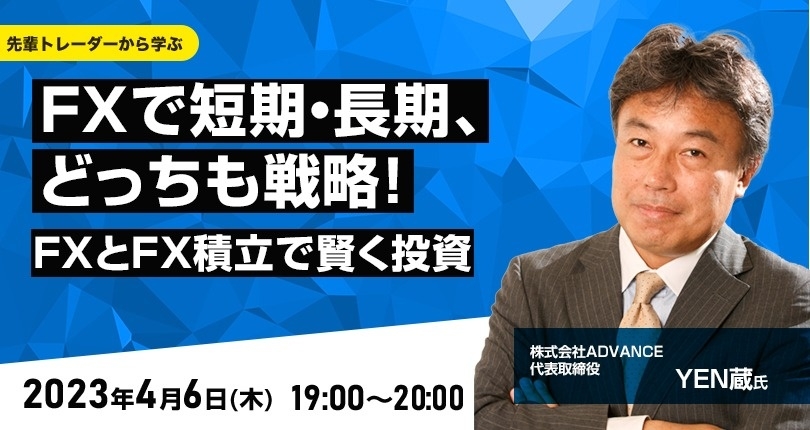 FXで「短期投資」?それともFX積立で「長期投資」!?外銀ディーラーとして活躍し、現在は様々なメディアでマーケット情報を発信しているYEN蔵氏が外貨を使った短期投資・長期投資に今もっとも適した通貨を解説します!トレードスタイルの幅を広げたい方、見直したい方にもぴったりなセミナーです。