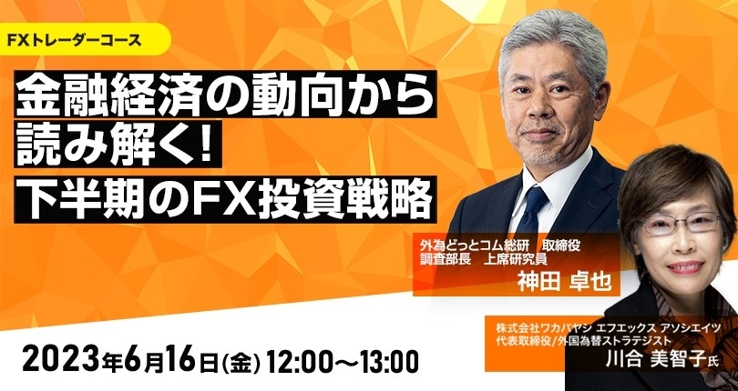 ワカバヤシエフエックスアソシエイツの代表取締役兼外国為替ストラテジストとして活躍中の川合美智子氏が登壇。外為どっとコム総合研究所の神田調査部長との対談形式でお送りします。変遷する各国の金融政策は外国為替の専門家の目にはどう映っているのか!?2023年上半期の振り返りと、今後の見通しを左右する注目ポイントを解説!FX投資戦略を描く上でのヒントがここにあります。