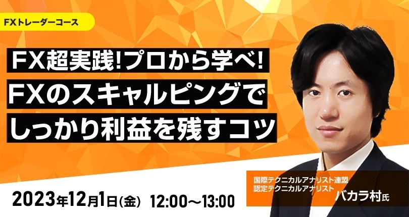 不安定な為替相場にどう立ち回ればいいのか、FXトレードの世界大会で優勝経験を持つ超実力派のFX専業トレーダー、バカラ村氏がトレードテクニックを解説!今の為替相場を乗りきるためにバカラ村氏がおススメする手法とは!?日々どのように為替相場と向き合い、どのようなトレードをしているのか、FXトレードが上達するコツと守るべき重要ポイントなども余すことなくお話いただきます。