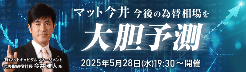 経済アナリストとしてご活躍中の“マット今井”こと今井雅人氏が、今後の為替相場の見通しを解説するオンラインセミナーを開催いたします。セミナー開催中は、YouTubeのチャット機能を利用して今井雅人氏にリアルタイムで質問ができます!