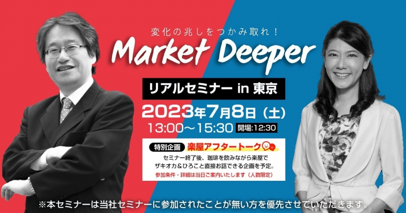 変化の兆しをつかみ取れ!ザキオカ&ひろこコンビで大人気のマーケットディーパー、YouTubeから飛び出しリアルセミナーを開催!現状分析から具体的な投資戦略、Q&Aコーナーも。特別企画「楽屋アフタートーク」もあり(人数限定・参加条件あり)